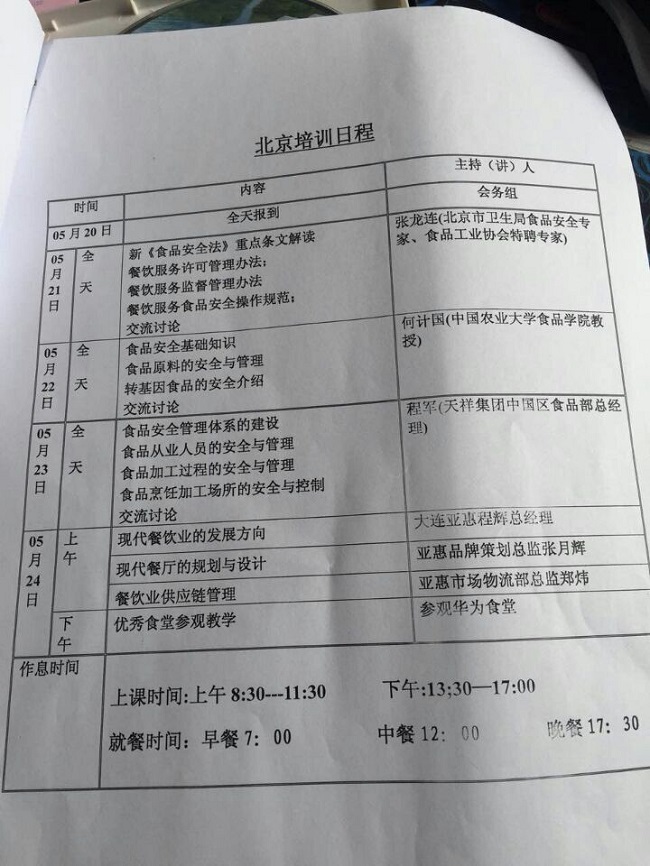 近日,我公司管理人員參加了在北京舉辦的食品安全衛(wèi)生崗前培訓(xùn),這次的培訓(xùn)為全日制五天,培訓(xùn)課的內(nèi)容大體分為《食品安全法》條文重點解讀、食品安全基礎(chǔ)知識、餐飲服務(wù)許可管理辦法、餐飲服務(wù)監(jiān)督管理辦法等。